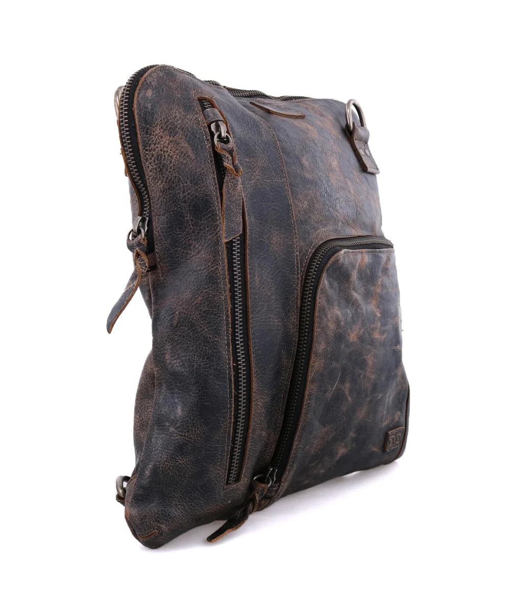 - Metal zippers with leather pulls and security tabs