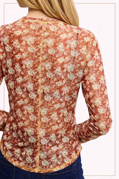 This stylish mesh top is featured in a semi sheer design with floral pattern, fitted long sleeves, crew neckline and stretchy fabrication with exposed stitching. It'll be your perfect lightweight layering piece throughout all season. Layer up or style solo for a variety look.
